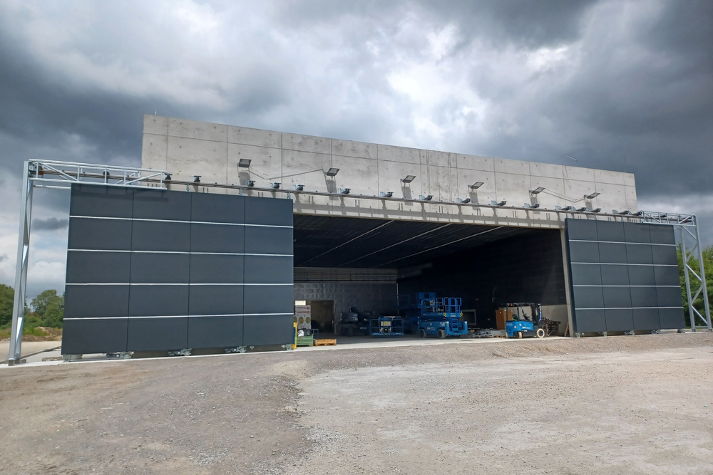 Lärmschutzhalle mit zwei geöffneten Toren   Bildrechte: SBN