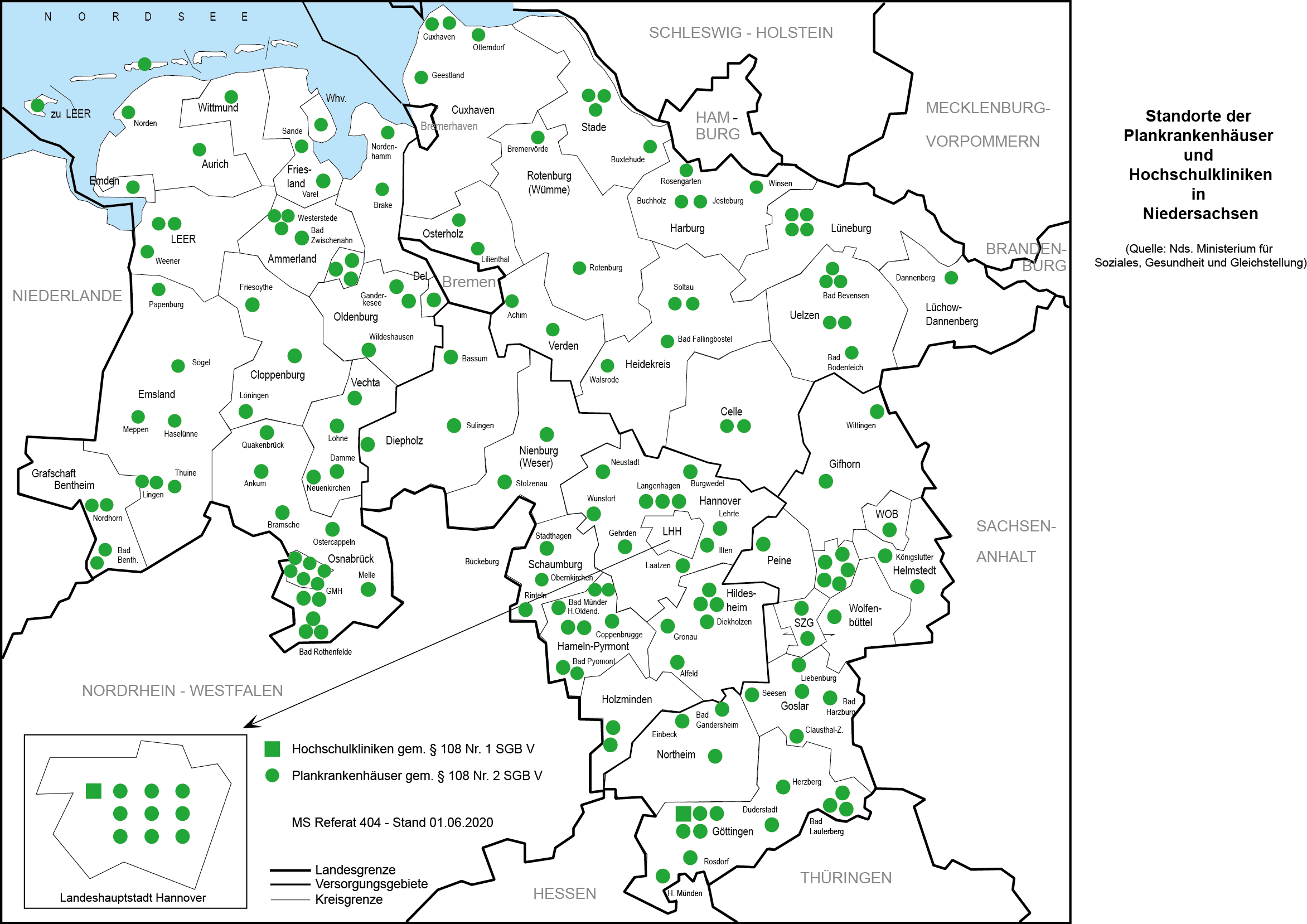 Krankenhausstandorte in Niedersachsen