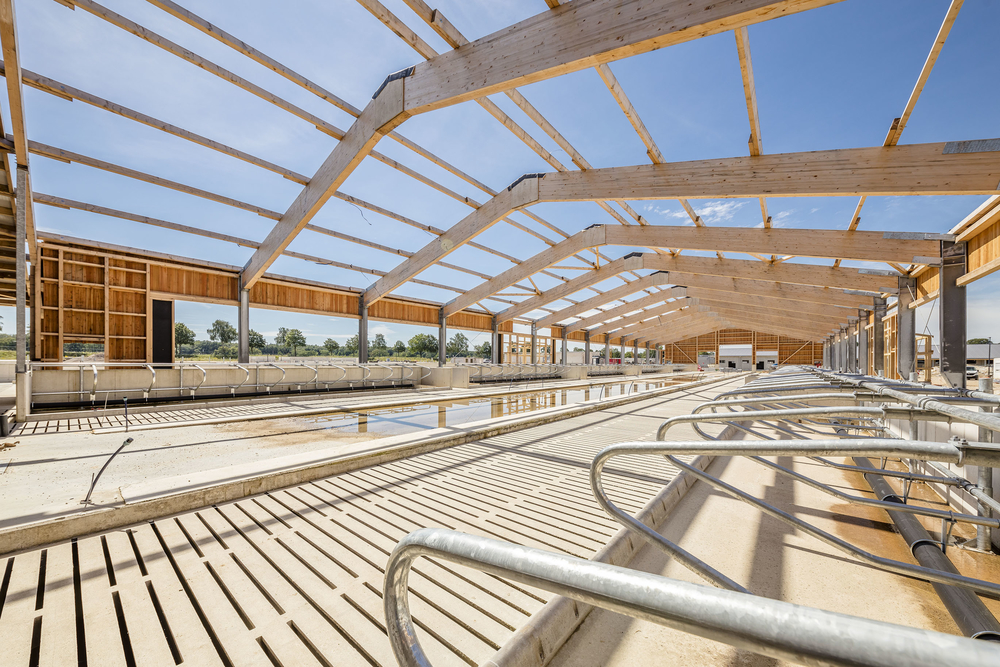 Bei der Planung wurde ein besonderer Wert auf das Tierwohl gelegt. Um die hohen Ansprüche an eine zeitgemäße Nutztierhaltung zu erfüllen, setzt das Baumanagement innovative Stallkonzepte beispielsweise für die Entmistung um. Für die Gestaltung der Gebäude hat es bewusst helle Dachfarben gewählt, was ein starkes Aufheizen der Gebäude durch die Sonne reduziert und somit den Tieren Hitzestress erspart. In allen Tierbereichen stehen Außenausläufe zur Verfügung – ein wesentlicher Bestandteil für tierwohlgerechte Ställe. Die eingeschossigen Stallbauten mit Satteldach erhalten eine Außenfassade in Holzoptik.